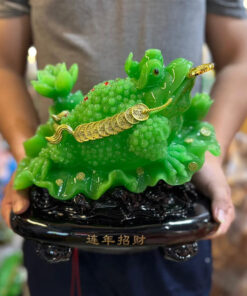 Hãy là người đầu tiên nhận xét “Tượng Thiềm Thừ Cóc Ngậm Tiền Ngồi Lá Sen Cao 25x35cm”